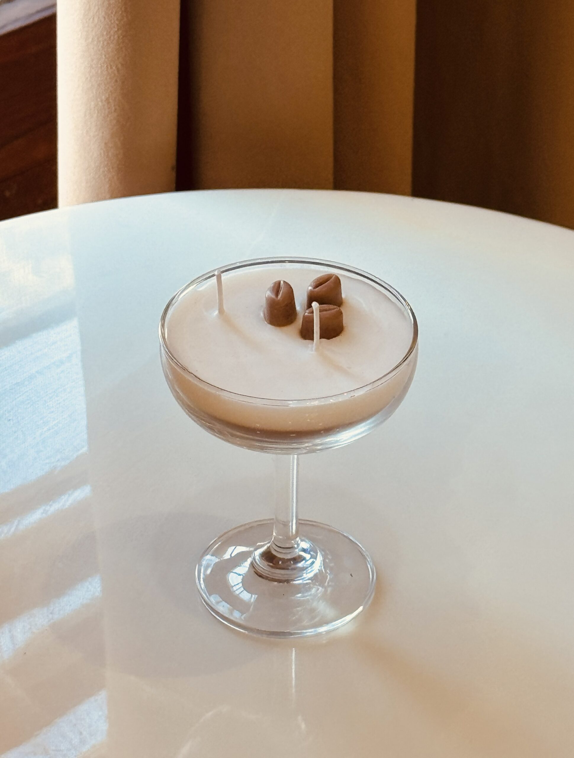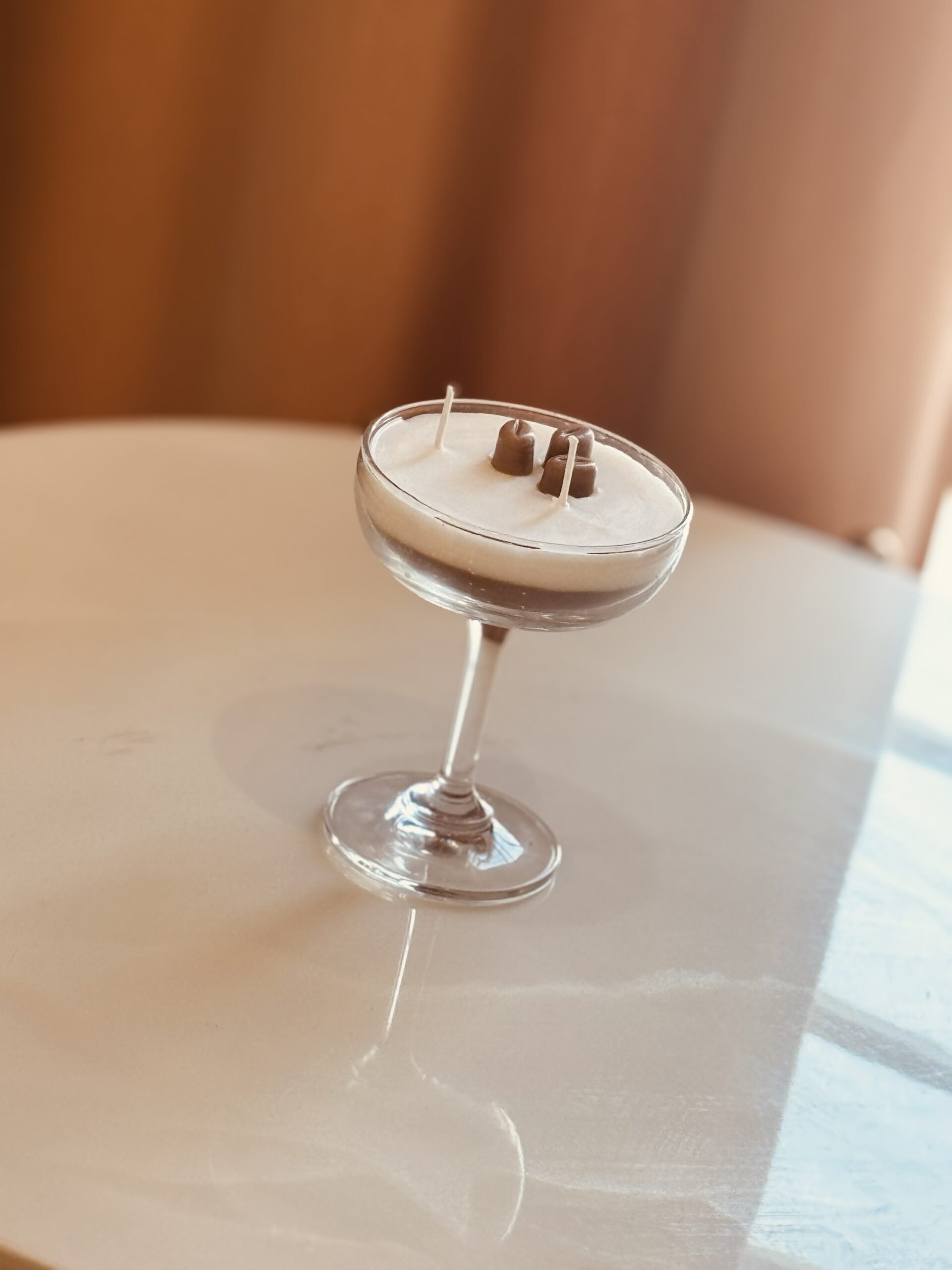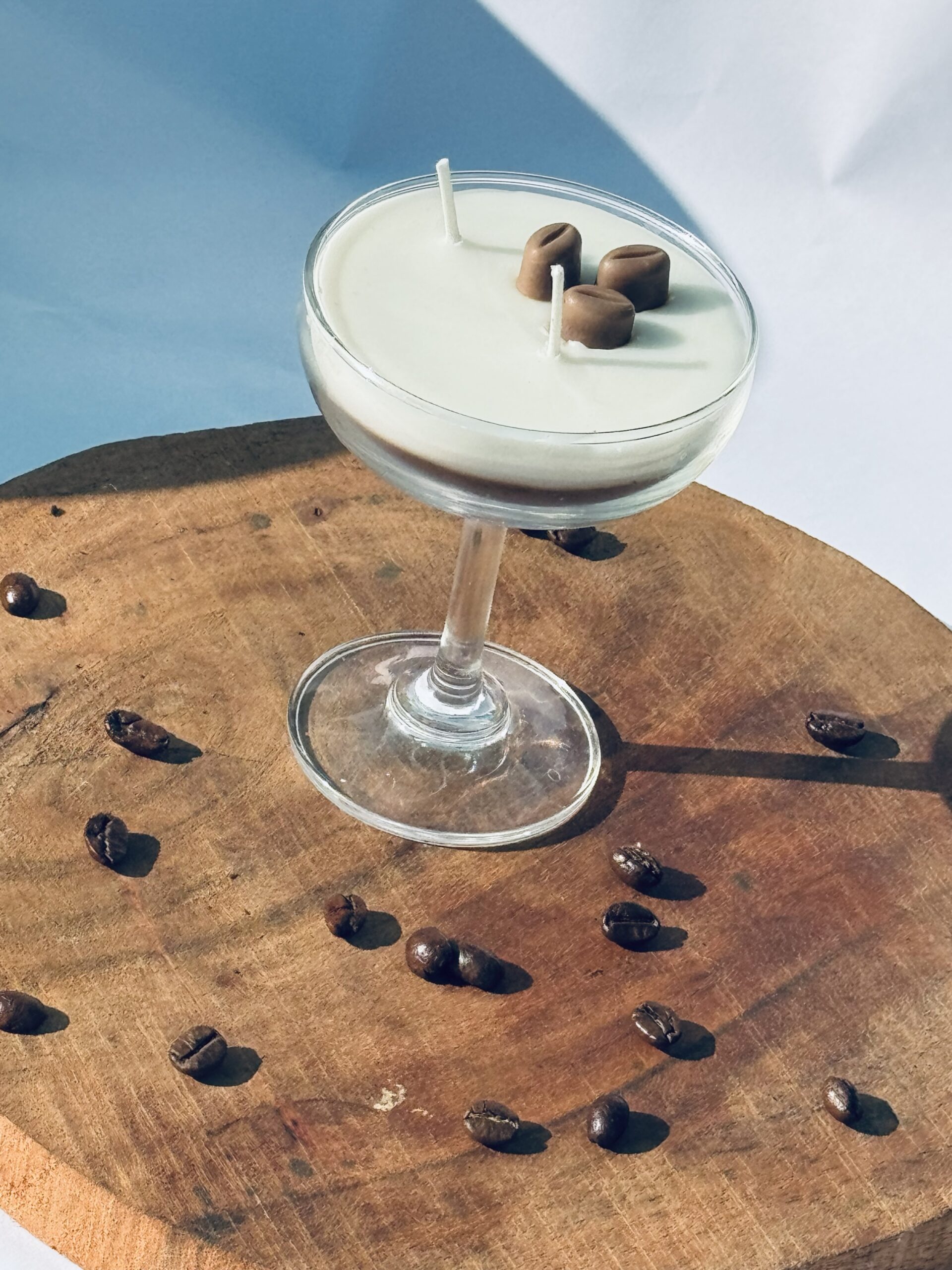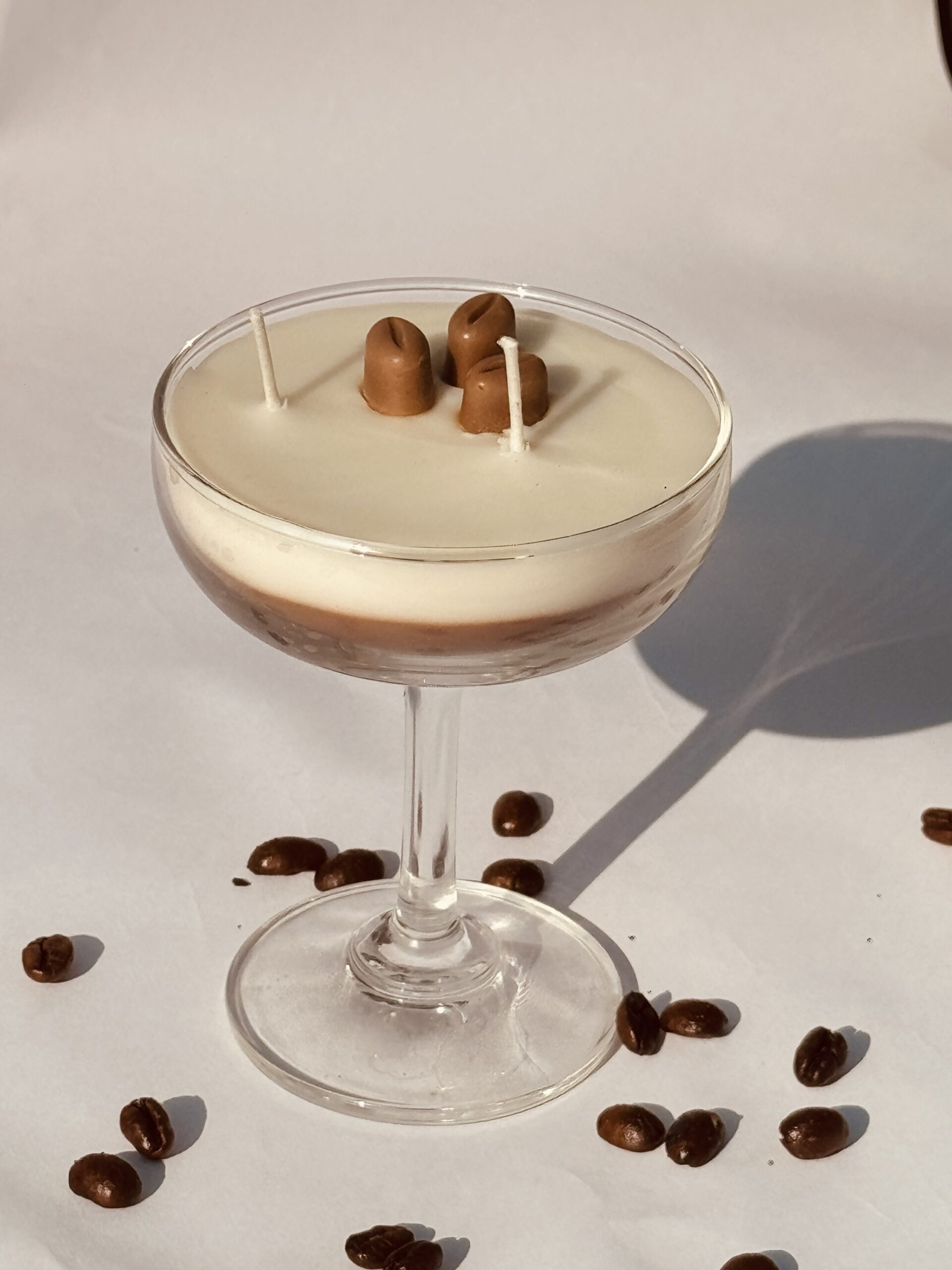 Elevate your space with our handcrafted coffee-scented candle, elegantly poured into a premium martini-style coupe glass. Designed to bring café-chic luxury into your home, this candle features a silky smooth cream-colored wax infused with rich, aromatic coffee notes—warm, comforting, and irresistibly cozy.